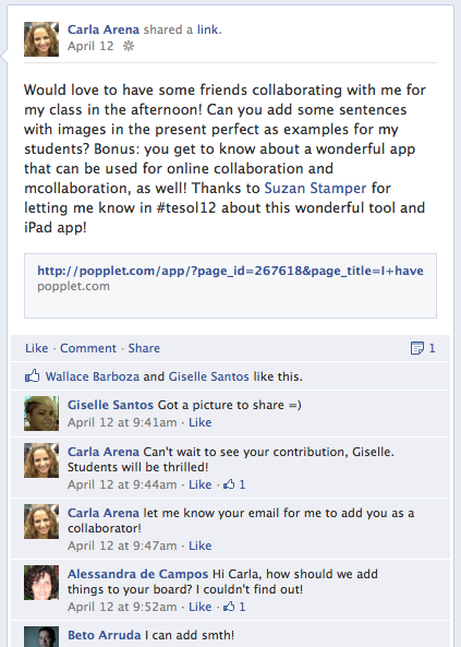 TESOL + POPPLET TOOL + NETWORK = EXPLOSIVE PRESENT PERFECT
