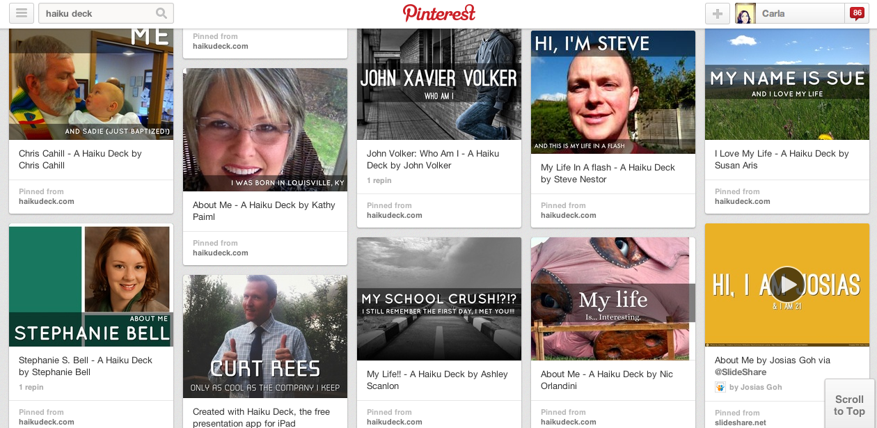 I’m sure you’ll find wonderful “about me” presentations to work with language authentically in Haiku Deck’s Pinterest Board: